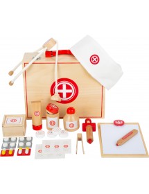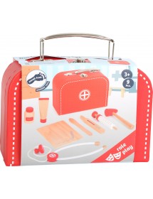 Jaunieji gydytojai bus gerai aprūpinti, kai skubės pas savo pacientus naudodami šį žaislinį daktaro rinkinį. Lagaminėlis ir visi žaisliniai medicinos instrumentai sukuria puikų estetinį įspūdį, nes rinkinys pagamintas iš natūralios, apdailintos medienos ir puoštas klasikinėmis raudona ir balta spalvomis.